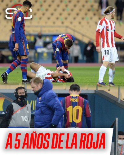 🔙 Un 17 de enero pero de 2021, Lionel Messi vio la roja tras la decisión del árbitro vía VAR al ver el manotazo del argentino sobre Asier Villalibre en la Supercopa de España vs. Athletic Club