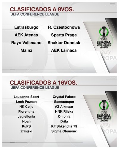 ¡¡SE TERMINÓ LA FASE LIGA DE LA UEFA CONFERENCE LEAGUE!! Luego de seis fechas, los primeros 8 equipos clasificaron directamente a los OCTAVOS de final y los que terminaron entre el 9° y el 24° lugar deben disputar los Playoffs: ¿Quién es tu candidato a quedarse con la copa?